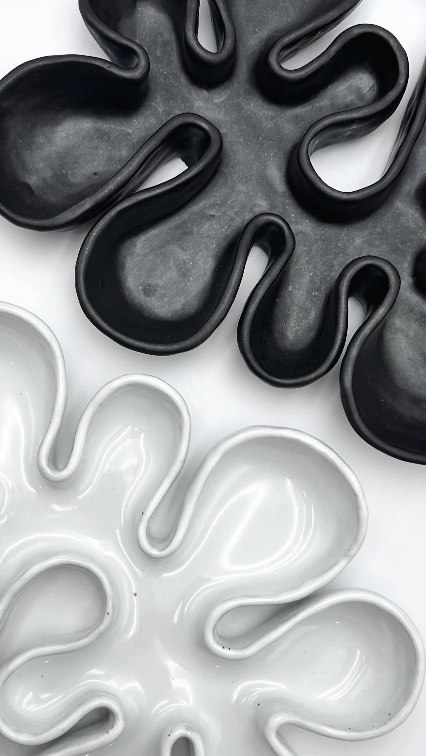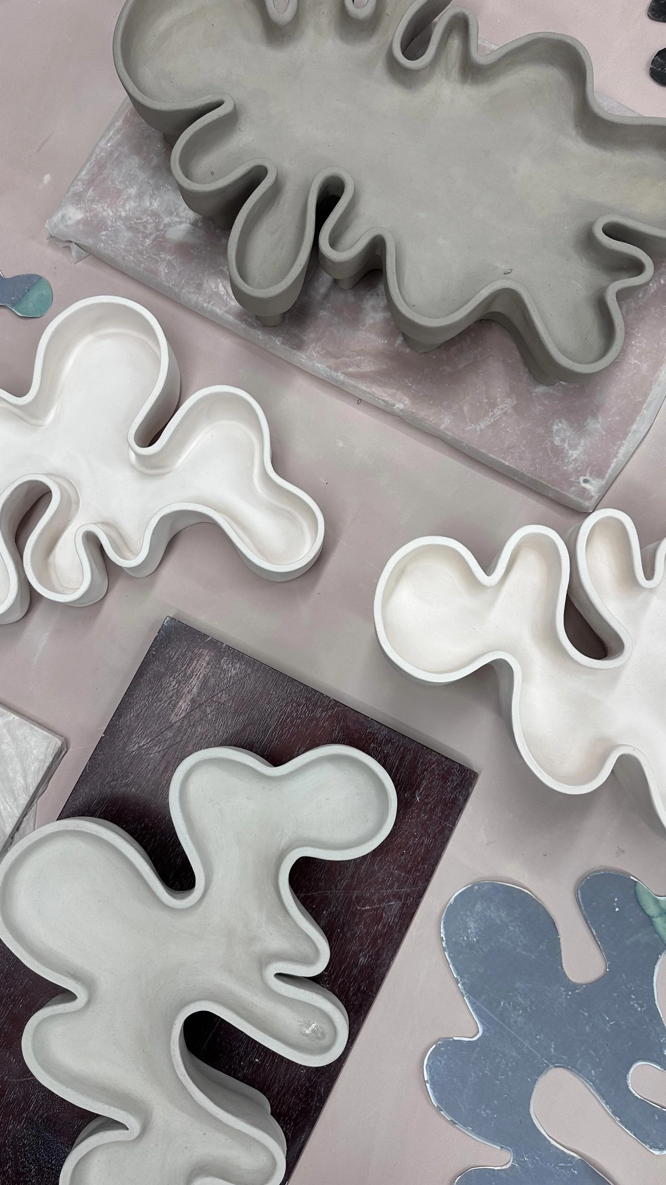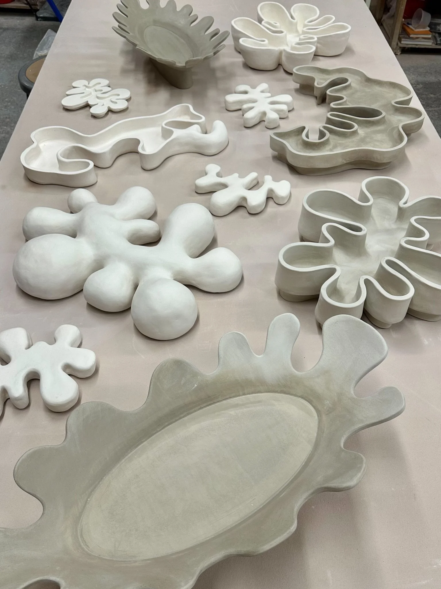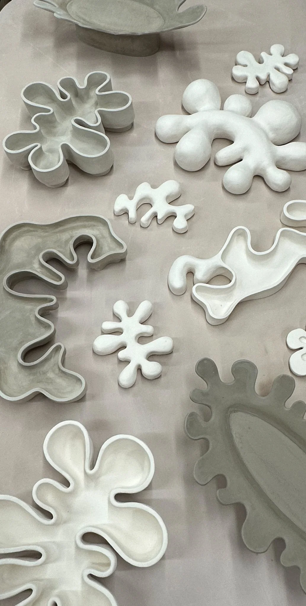I AM DRAWN TO ORGANIC SHAPES, POSITIVE AND NEGATIVE SPACE, DIMENSIONAL BIOMORPHIC FORMS, TACTILE TEXTURES THAT FEEL BOTH GROUNDED + ALIVE.